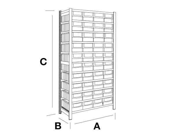 Las estanterías metálicas EP50 están diseñadas para ser equipadas con nuestros cajones plásticos REGALBOX. La colocación y posicionamiento de los cajones se realiza mediante guías en los diferentes niveles de carga, que dirigen de forma precisa el proceso de extracción y recogida de los cajones en las estanterías. El sistema con guías es un diseño original y diferenciador del resto de sistemas parecidos.