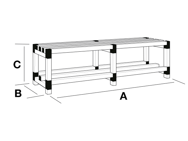 Los bancos de plástico están fabricados con resinas plásticas de alta calidad, que evitan la condensación y oxidación. Totalmente higiénicos, con una supeficie lisa y no porosa, están especialmente indicados para su uso en vestuarios. Pueden ser equipados con accesorios como estantes, colgadores, plataformas y así combinarse con bancos dobles para su total adaptación a las exigencias del usuario.